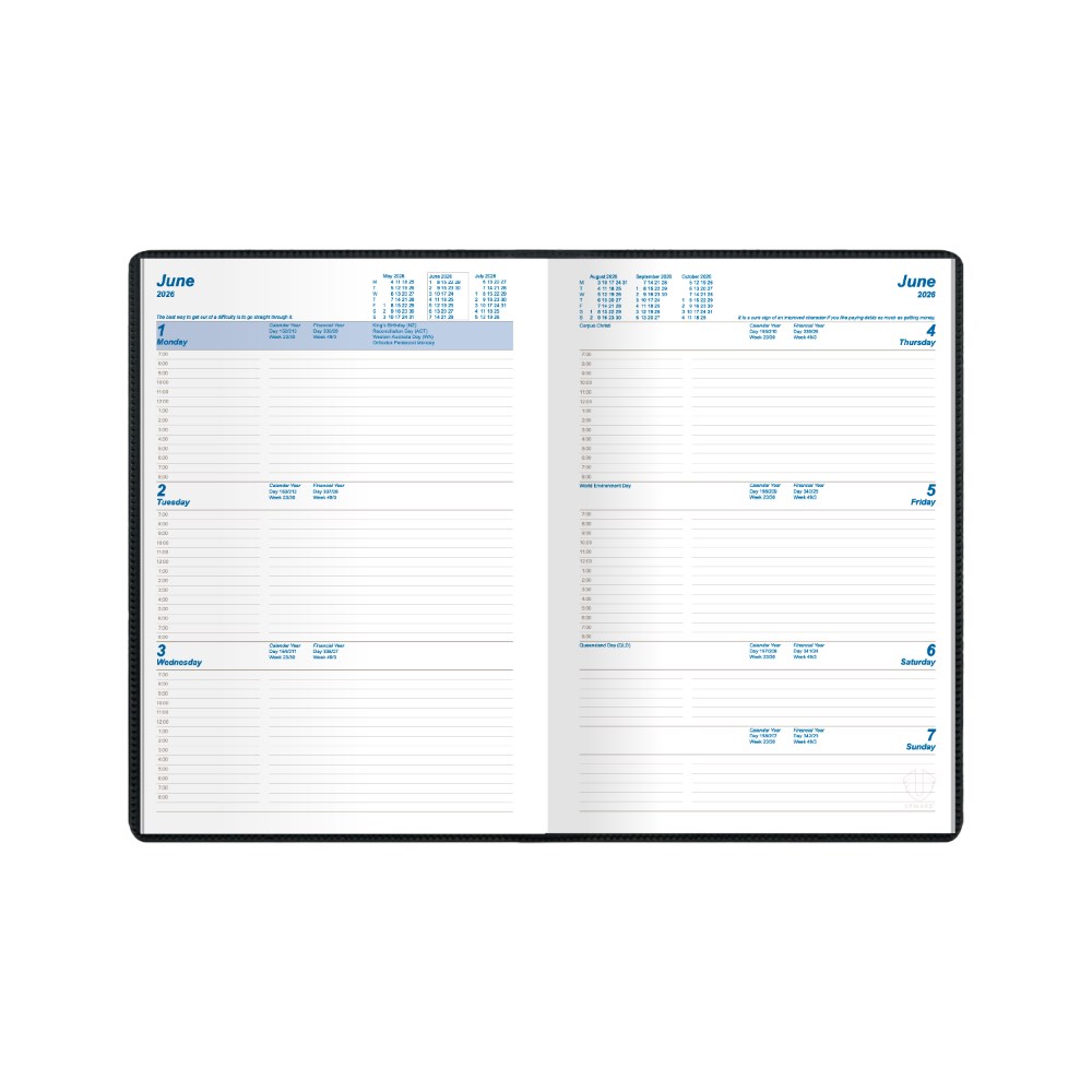 Upward Standard Diary B5 Vertical Week To View Black