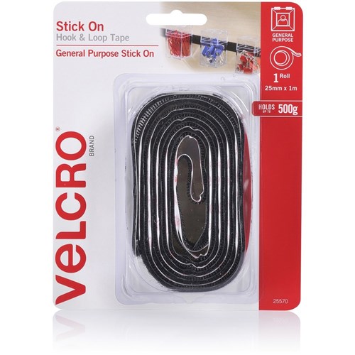 Velcro Brand Hook & Loop 25mm x1m Tape Stick On Black