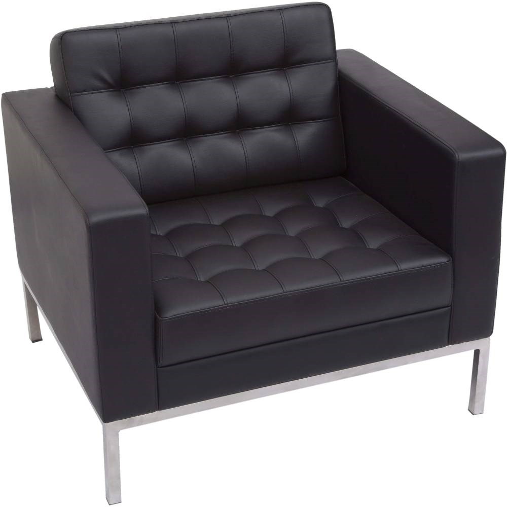 Elegant reception area arm chair with button finish to black PU, easy clean upholstery.