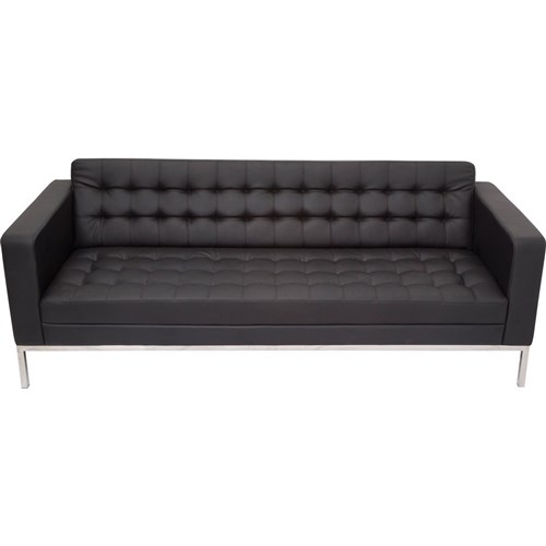 Venus Three Seater Lounge Stainless Steel Base Button Finish Black PU Upholstery