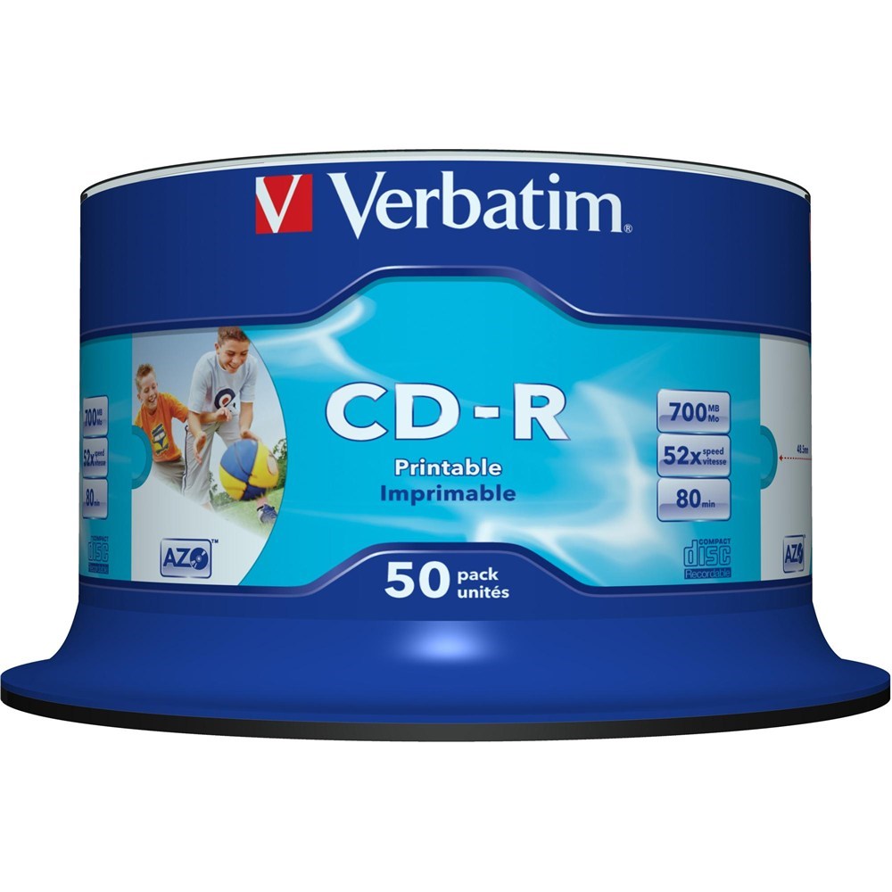 Verbatim Recordable CD-R 80Min 700MB 52X Printable Inkjet Pack of 50 White