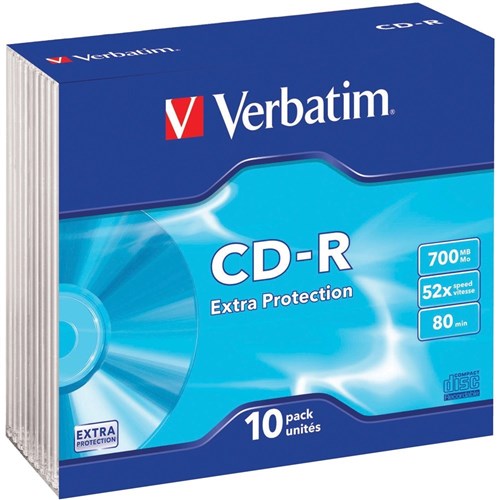 Verbatim Recordable CD-R 80Min 700MB 52X Slim Case Pack of 10