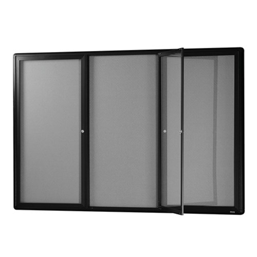 Visionchart Notice Case Black 3 Hinged Door Pinnable Grey Fabric 1830W x 1220mmH