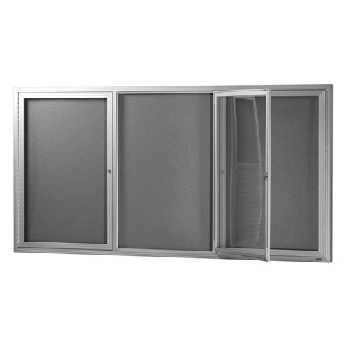 Visionchart Notice Case Silver 3 Hinged Door Pinnable Grey Fabric 1830W x 915mmH