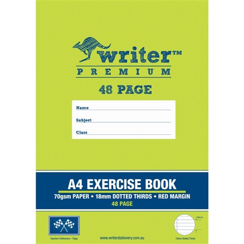 Feature heavy duty covers, high quality white 70gsm paper with blue dotted thirds ruled lines and a red margin.