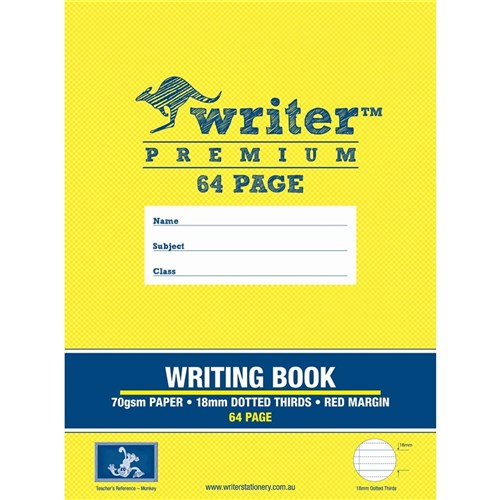 Writer Premium Writing Book 245x330mm 18mm Dotted Thirds + Margin 64 Page - Monkey